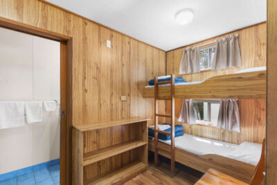 This budget-friendly, pet-welcoming cabin is ideal for up to four guests, offering a double bed in the open plan living area and one set of bunk in a seperate room. The compact kitchenette includes a cooktop, microwave, and fridge, with reverse-cycle air conditioning for comfort. Enjoy simple, practical living with a private ensuite and a small outdoor space to unwind—pets are welcome too.